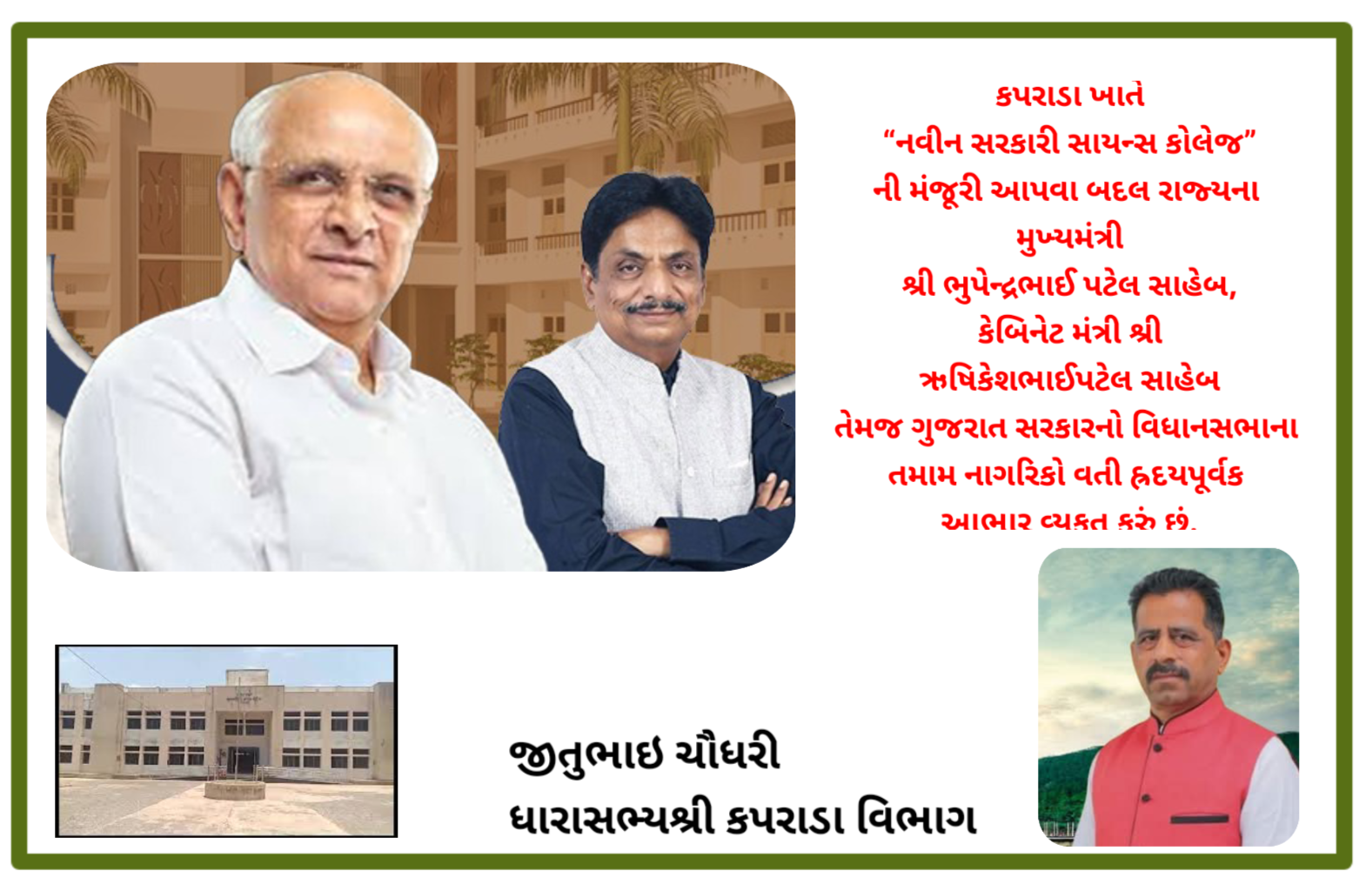 ઉલ્લેખનીય છેકે કપરાડા ધારાસભ્ય જીતુભાઈ ચૌધરીએ કોંગ્રેસમાંથી ભાજપમાં જોડાવા માટેની શરત મૂકી હતી, જેમાં કપરાડા તાલુકાના વિદ્યાર્થીઓ માટે સાયન્સ કોલેજની સ્થાપના કરવાની માગ કરી હતી. આજે પરિપૂર્ણ થઈ છે.