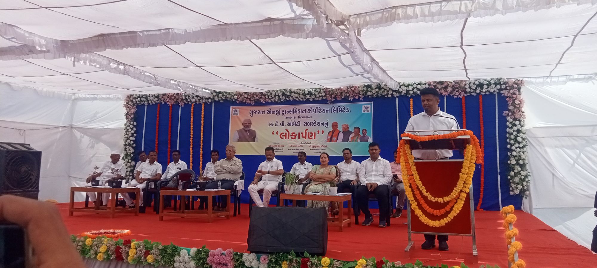 લોકાર્પણ સમારોહમાં ગુજરાત એનર્જી ટ્રાન્સમિશન કોર્પોરેશન લિમિટેડના અધિકારીઓ,વડોદરાના મુખ્ય ઇજનેર કે.બી.