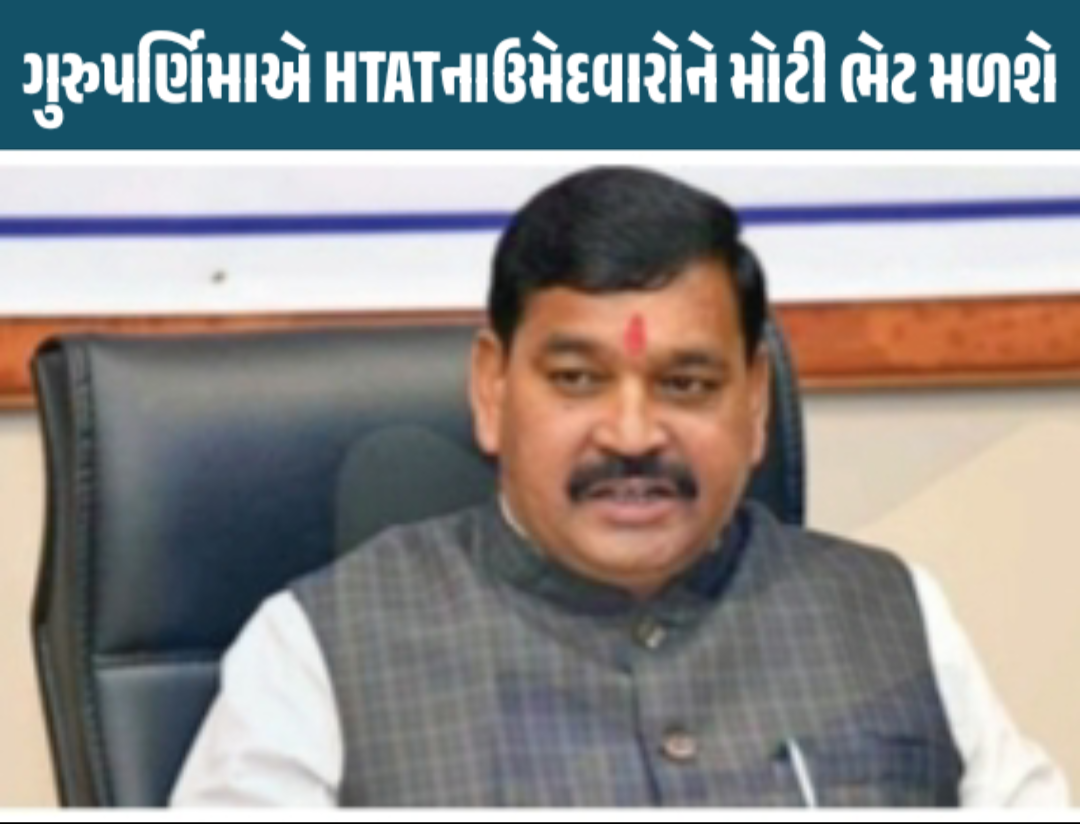 - ગુરુપૂર્ણિમાનાં દિવસે HTAT ઉમેદવારોને મોટી ભેટ આપશે. એટલે કે ૨૧ જુલાઈએ નિયમોની જાહેરાત થઈ શકે છે.
