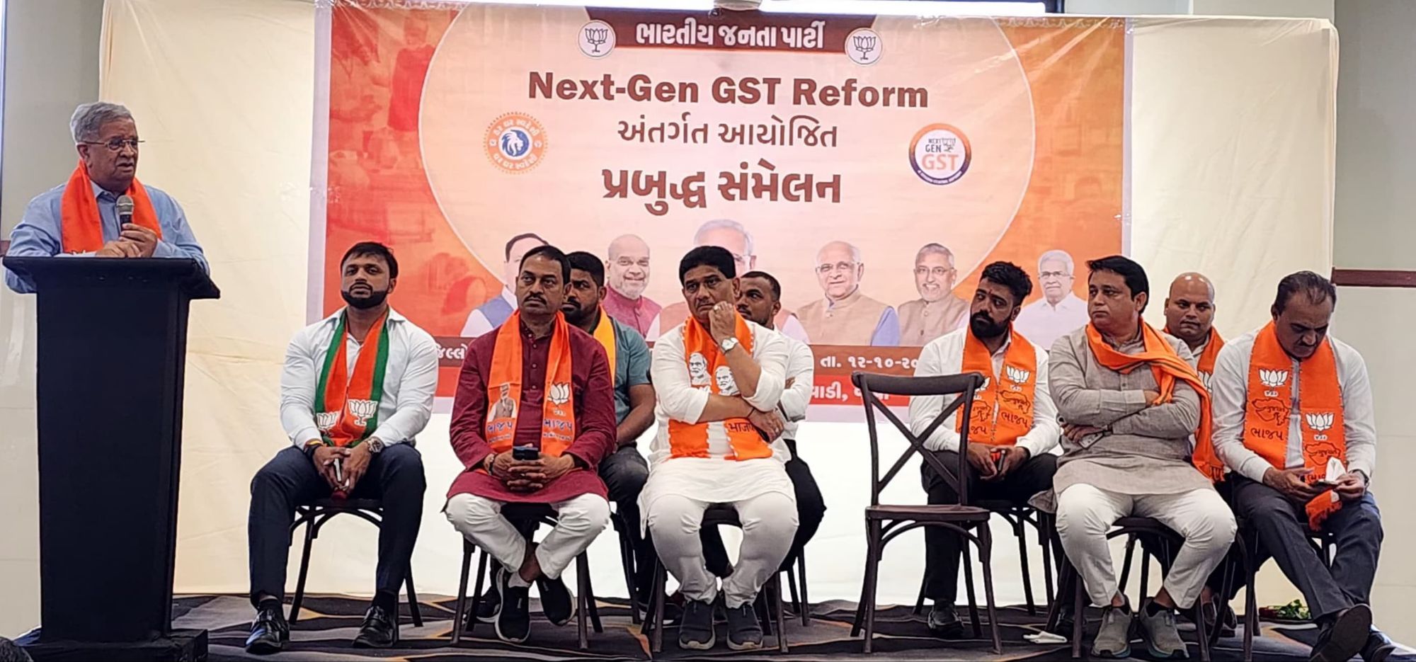 આ પ્રસંગે જિલ્લા ભાજપ પ્રમુખ શ્રી હેમંતભાઈ કંસારાએ પોતાના અધ્યક્ષીય સંબોધનમાં જણાવ્યું હતું કે ભાજપ સરકાર હંમેશા સામાન્ય લોકોના હિત માટે કાર્યરત રહી છે. મોદીનાં નેતૃત્વ હેઠળ દેશના નાગરિકોને સીધા લાભ મળે તે માટે અનેક યોજનાઓ અમલમાં મૂકાઈ છે. જી.એસ.ટી. સુધારાઓ એ પણ એવો જ એક પ્રયાસ છે, જે અર્થતંત્રને મજબૂત બનાવશે અને લોકોના ખિસ્સા પરનો બોજ હળવો કરશે.