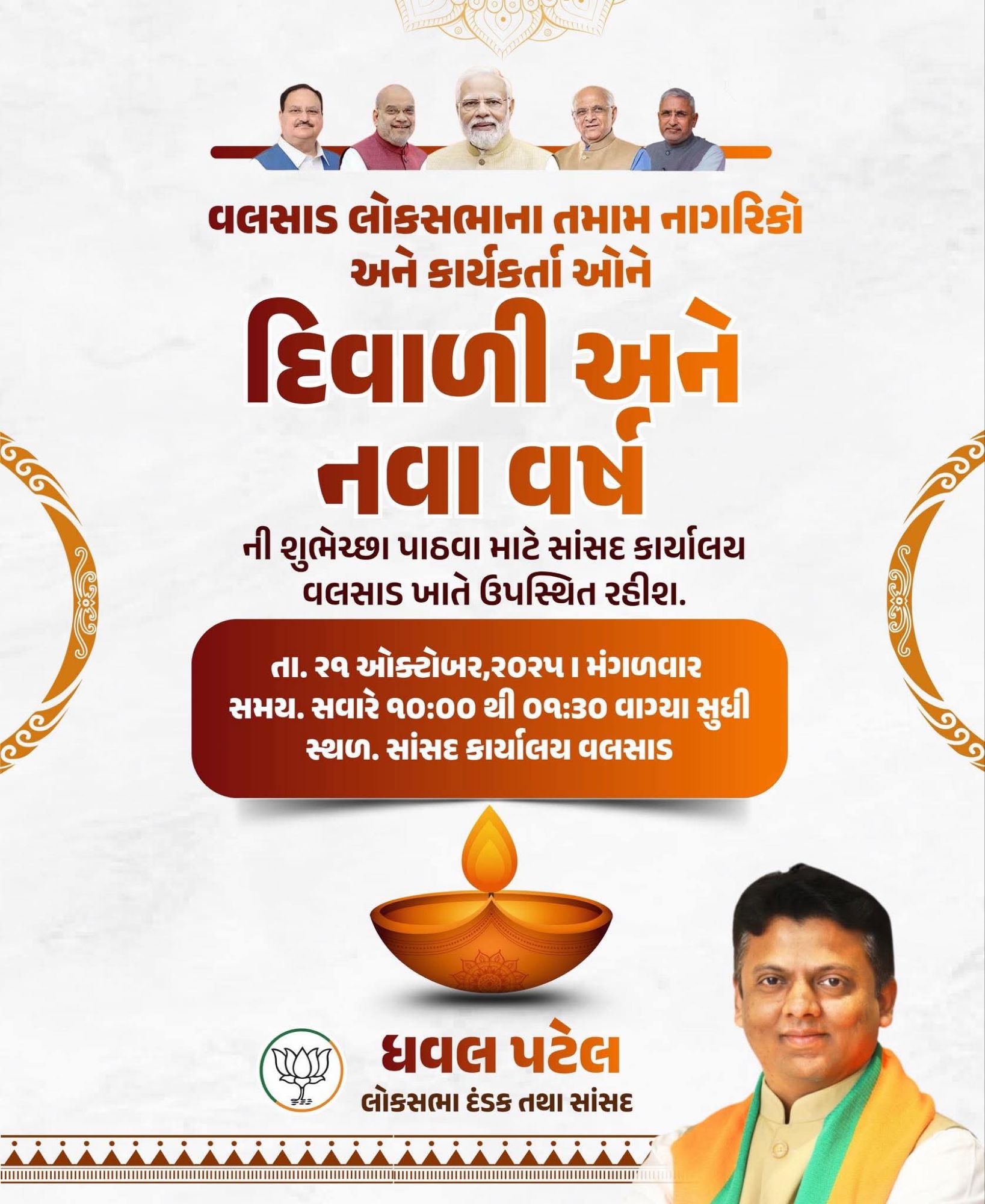 માતા લક્ષ્મીજી અને ભગવાન ગણેશજીના દિવ્ય આશીર્વાદથી આપના પરિવારમાં સુખ, શાંતિ, આરોગ્ય અને સમૃદ્ધિ વરસે — એવી મારી હાર્દિક પ્રાર્થના છે.