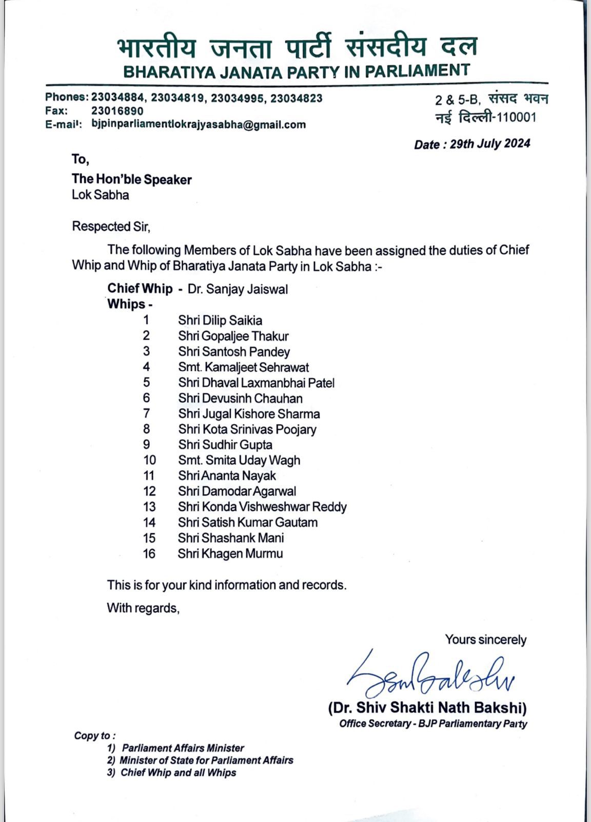 ભારતીય જનતા પાર્ટી સંસદીય દળ દ્વારા તારીખ ૨૯મી જુલાઈ ના રોજ દેશ ના યશસ્વી વડાપ્રધાન આદરણીય શ્રી નરેન્દ્રભાઇ મોદીજી ના નેતૃત્વ માં લોકસભા ના મુખ્ય દંડક અને દંડકો ની નિમણૂક કરવામાં આવી હતી જેમાં વલસાડ-ડાંગ લોકસભા મતવિસ્તારના યુવા, ઉત્સાહી અને શિક્ષિત સાંસદ શ્રી ધવલભાઈ પટેલ ની દંડક તરીકે નિમણૂક કરવામાં આવતા વલસાડ-ડાંગ જિલ્લા સહિત સમગ્ર ગુજરાતમાં ગૌરવ અને આનંદની લાગણી છવાઈ જવા પામી છે.