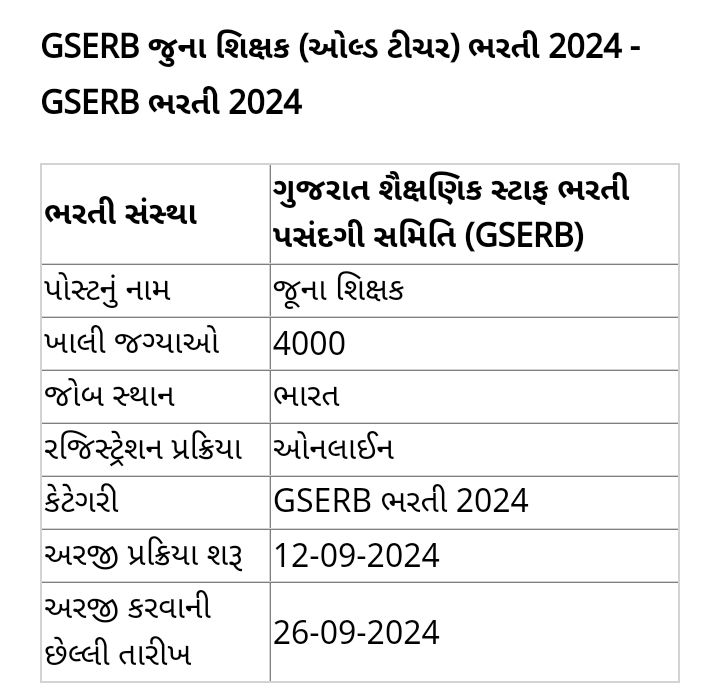 GSERB જુના શિક્ષક (ઓલ્ડ ટીચર) ભરતી 2024 – નોકરીની વિગતો