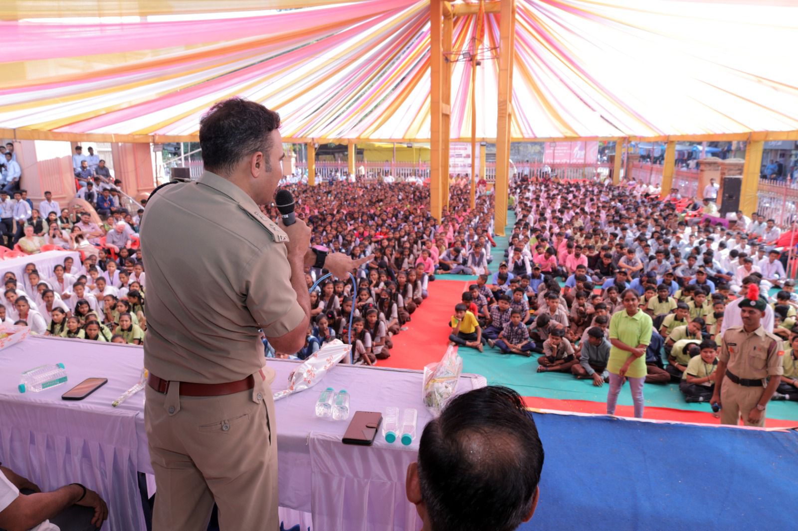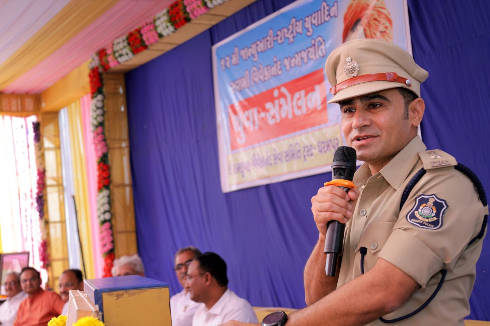 પરિસરમા આયોજિત યુવા સંમેલનના મુખ્ય વક્તા વલસાડ જિલ્લા પોલીસ અધિક્ષક ડો કરનરાજ વાઘેલાજીએ (આઈપીએસ) ૩૦૦૦ જેટલા યુવાનોને સંબોધન કરતાં જણાવ્યું કે આજના જમાનાના યુવાનોના એકમાત્ર આદર્શ સ્વામી વિવેકનંદજી જ છે, યુવા અવસ્થામાં દરેક વિધ્યાર્થી પાસે એક નિશ્ચિત ધ્યેય હોવો જોઈએ અને એને પામવા પ્રચંડ પુરુષાર્થ પણ કરવો જોઈએ અનેકવિધ ઈતર પ્રવૃતિઑમાં પણ રસ લઈ દરેક પાસામાં પરંગતતા મેળવવી એ આજના વિધ્યાર્થીઑ માટે ખૂબ જરૂરી છે આ સાથે એમને પોતાના જીવનમાં જે સ્વામી વિવેકાનંદજીના વિચારો આત્મસાત કર્યા હતા જેમાં આત્મવિશ્વાસ, ધીરજ અને ધ્યેયપ્રાપ્તિ મુખ્યત્વે રહ્યા હતા એમ જણાવી ડો વાઘેલજીએ પોતે એમબીબીએસ (ડૉક્ટર) થયા બાદ એક વર્ષ ઇન્ટેનશીપ કરી અને ત્યાર બાદ પણ આઇપીએસ બનવાનું સ્વપ્નું સેવ્યું અને એને વિવેકનંદજીના સિધ્ધાંતો – આદર્શો થકી સિધ્ધ કર્યાની પોતાની આખી જીવનગાથા ભાવવાહી શૈલીમાં કહી હતી અને હાલ તાજેતરમાં આવેલ “૧૨મુ ફેઇલ” પીકચર દરેક વિધ્યાર્થીઑને જોવા અનુરોધ કર્યો હતો