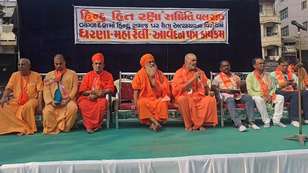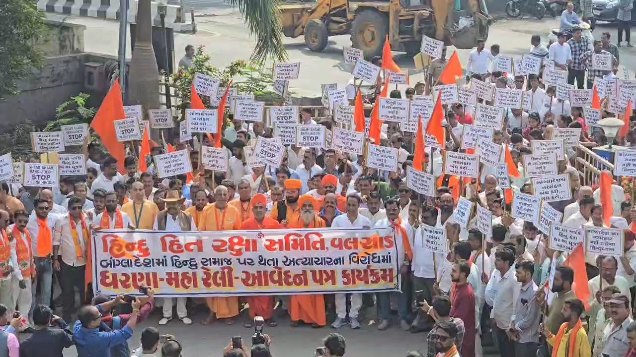 વલસાડમાં હિન્દુ સંગઠનો દ્વારા બાંગ્લાદેશમાં હિન્દુઓ પર થતા અત્યાચાર અને હત્યાઓના વિરોધમાં વિશાળ પ્રદર્શન
