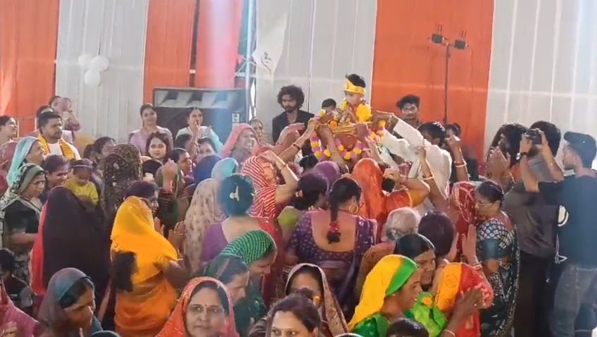 કૃષ્ણજન્મની ક્ષણે સમગ્ર પંડાલ ભક્તિના રંગે રંગાઈ ગયો. કોન્ટ્રાક્ટર હિતેષભાઈ રાઠોડ અને તેમના પરિવાર દ્વારા ભગવાનનું પારણું ઝુલાવવામાં આવ્યું. ગૌરક્ષક શંકરભાઈ ભાનુશાલી વાસુદેવ સ્વરૂપે પધાર્યા હતા, જેમના દર્શનથી ભક્તોમાં વિશેષ ઉત્સાહ છવાઈ ગયો. “નંદ ઘેર આનંદ ભયો, જય કનૈયા લાલ કી”ના જયઘોષથી સમગ્ર વિસ્તાર ગુંજી ઉઠ્યો. ભક્તોએ કીર્તન, ભજન અને તાળીઓ સાથે ભગવાનના આગમનને વધાવ્યા.