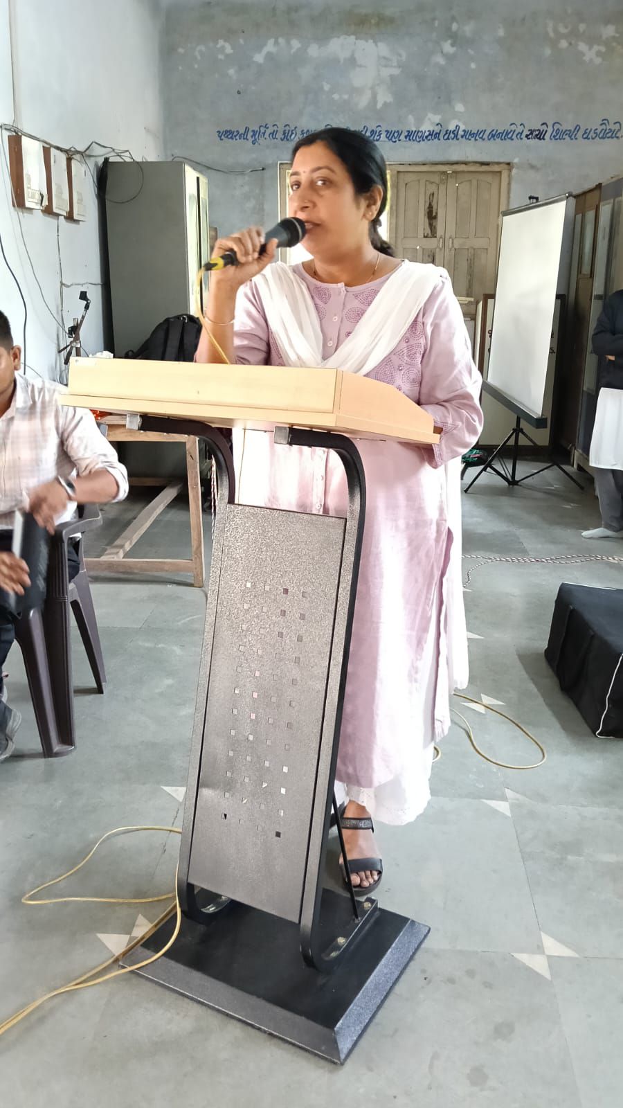 કાર્યક્રમના મુખ્ય અતિથિ તરીકે શાળાના આચાર્ય ધર્મેશભાઈ પટેલે હાજરી આપી હતી. તેમણે પોતાના ઉદબોધનમાં વર્તમાન સમયમાં માતૃભાષાનું મહત્વ અને તેની જાળવણી અંગે પ્રાસંગિક વિચાર રજૂ કર્યા હતા. મુખ્ય વક્તા તરીકે કોલેજના આચાર્યા પ્રિ. ડૉ. પ્રિતી ચૌહાણે રાષ્ટ્રીય શિક્ષણ નીતિ-2020 અંતર્ગત પ્રાથમિક શિક્ષણ માતૃભાષામાં આપવાના મહત્વ પર પ્રકાશ પાડ્યો હતો. શિક્ષક દિપેન ભંડારીએ ગુજરાતી સાહિત્યની સમૃદ્ધ પરંપરા અંગે માહિતી આપી હતી.