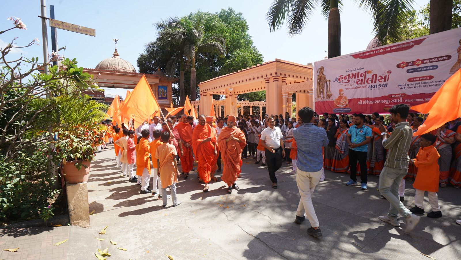 વલસાડ ખાતે હાલમાં ચાલી રહેલી “શ્રી હનુમાન ચાલીસા યુવા કથા”ના કથાકાર તરીકે લોકપ્રિય બનેલા સ્વામીશ્રીના આગમનને લઈને ગુરુકુળ પરિવારમાં વિશેષ આનંદ અને આતુરતા જોવા મળી હતી. ગુરુકુળ પરિસરમાં કષ્ટભંજન દેવની આરતી અને પ્રસાદી પૂજનનો કાર્યક્રમ ભક્તિભાવ સાથે યોજાયો હતો. મંદિર પરિસર ‘જય શ્રી રામ’ અને ‘જય હનુમાન’ના ગુંજતા નાદોથી ગુંજી ઉઠ્યું હતું.