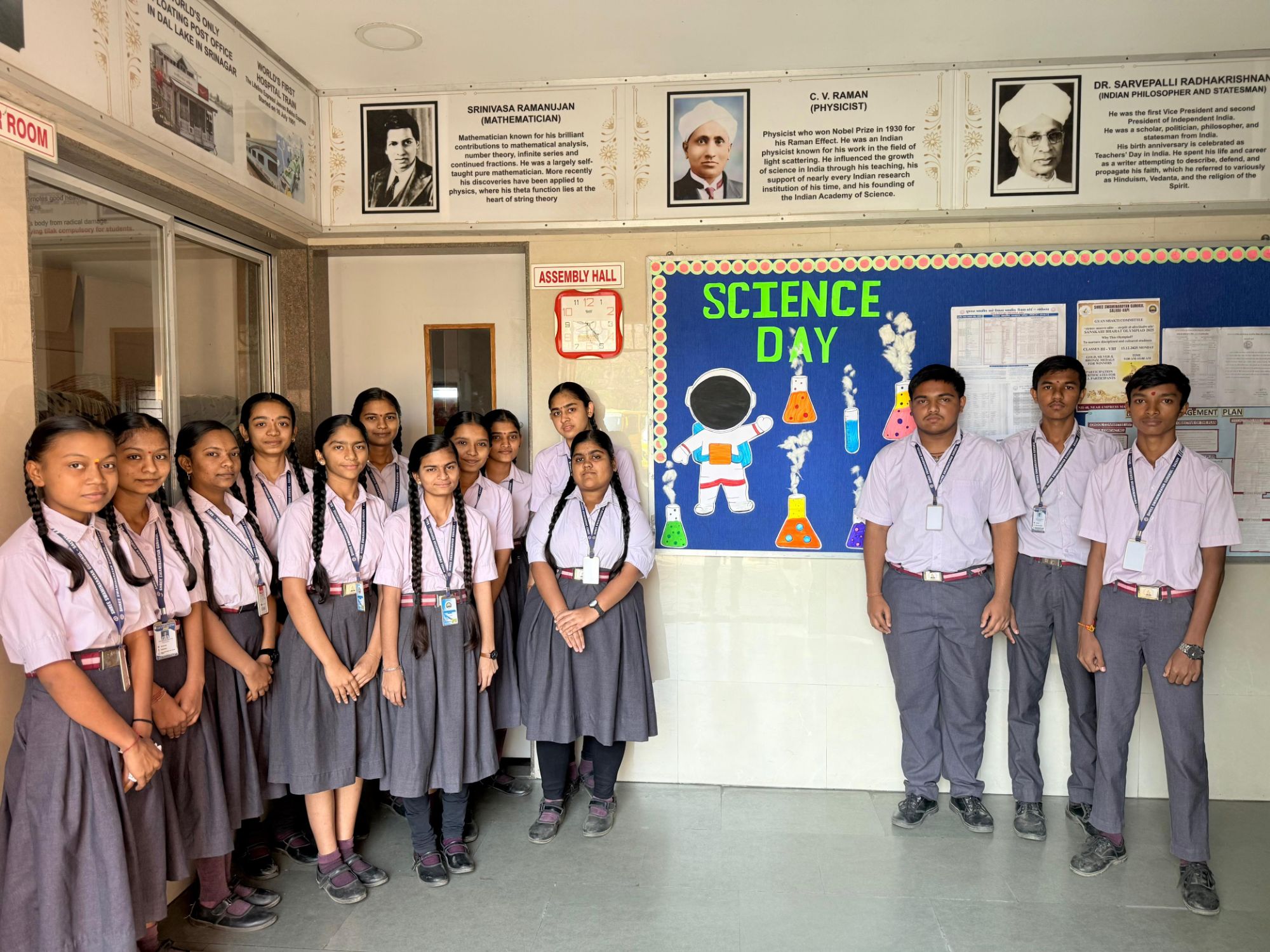 કાર્યક્રમની શરૂઆત પ્રાર્થના અને દીપ પ્રાગટ્યથી કરવામાં આવી હતી. વિજ્ઞાન શિક્ષકો દ્વારા C. V. Ramanની શોધ ‘રામન ઇફેક્ટ’ વિશે ઊંડાણપૂર્વક માહિતી આપવામાં આવી હતી. તેમણે સમજાવ્યું કે જ્યારે પ્રકાશ પારદર્શક પદાર્થમાંથી પસાર થાય છે ત્યારે તેનું કિરણ વિખેરાય છે અને તેની તરંગલંબાઈમાં ફેરફાર થાય છે. આ અનોખી શોધ બદલ તેમને ૧૯૩૦માં નોબેલ પુરસ્કાર મળ્યો હતો, જે ભારત માટે ગૌરવની ક્ષણ હતી.