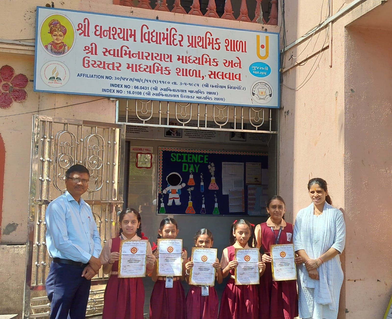 પ્રણવ પારિજાત ટ્રસ્ટ, સુરત સંચાલિત મહાગુજરાત ગંધર્વ સંગીત સમિતિ દ્વારા નવેમ્બર ૨૦૨૫ દરમિયાન યોજાયેલી સંગીત પ્રારંભિક ભરતનાટ્યમ પરીક્ષાનું પરિણામ તાજેતરમાં જાહેર કરવામાં આવ્યું છે. આ પરીક્ષામાં સલવાવ સ્થિત શ્રી ઘનશ્યામ વિદ્યામંદિરના વિદ્યાર્થીઓએ ઉત્તમ પ્રદર્શન કરીને શાળાનું નામ ગૌરવથી ઉજ્જવળ બનાવ્યું છે. નૃત્યકલા પ્રત્યેના સમર્પણ અને મહેનતના કારણે વિદ્યાર્થીઓએ પરીક્ષામાં શાનદાર સફળતા મેળવી છે.