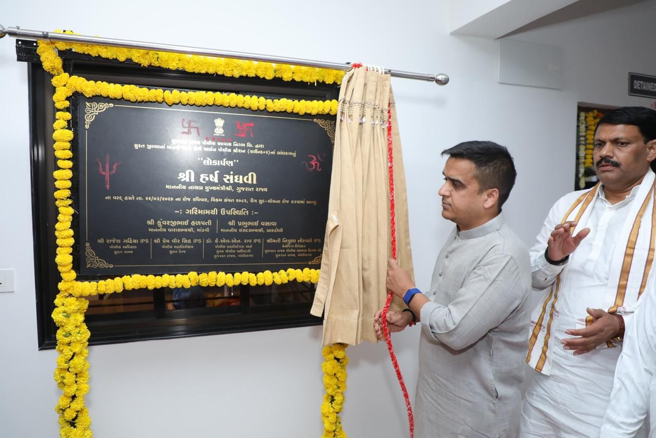 માહિતી બ્યુરો, સુરત, રવિવાર : કાયદો અને વ્યવસ્થાની સ્થિતિને વધુ મજબૂત બનાવવા રાજ્ય સરકાર દ્વારા સતત આધુનિક પોલીસ સુવિધાઓ ઉભી કરવામાં આવી રહી છે. આ દિશામાં એક મહત્વપૂર્ણ પગલાં રૂપે સુરત, વલસાડ અને તાપી જિલ્લાઓમાં કુલ રૂ.૬૬ કરોડના ખર્ચે વિવિધ નવનિર્મિત પોલીસ સ્ટેશનો અને પોલીસ લાઈનના પ્રોજેક્ટોનું ઈ-લોકાર્પણ અને ઈ-ખાતમુહૂર્ત રાજ્યના નાયબ મુખ્યમંત્રી હર્ષ સંઘવીના હસ્તે કરવામાં આવ્યું હતું.
