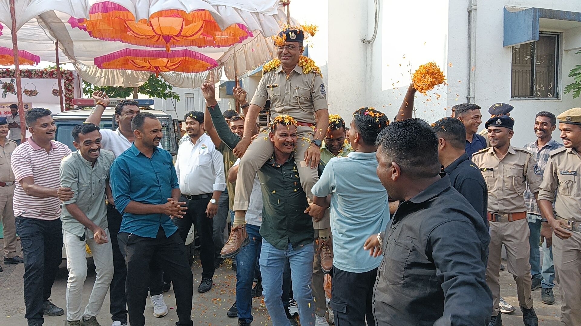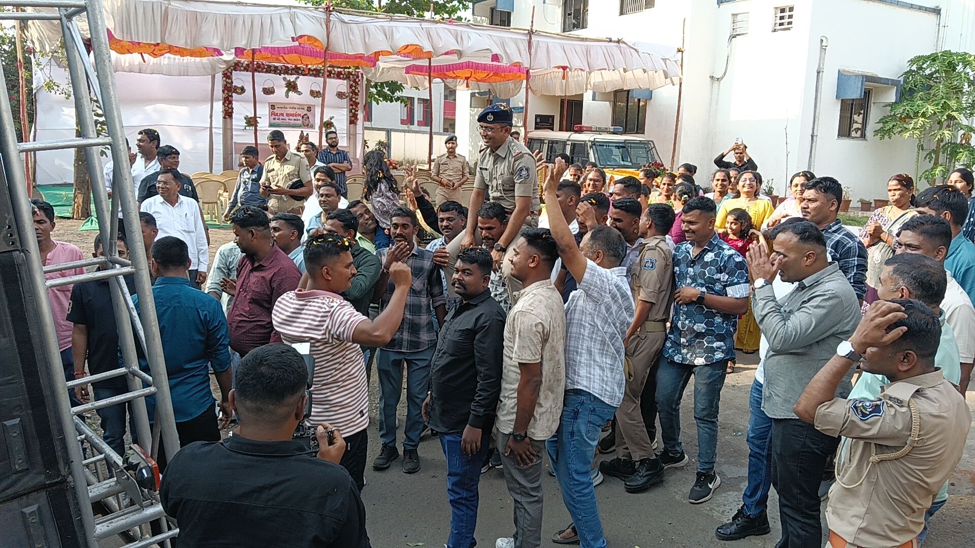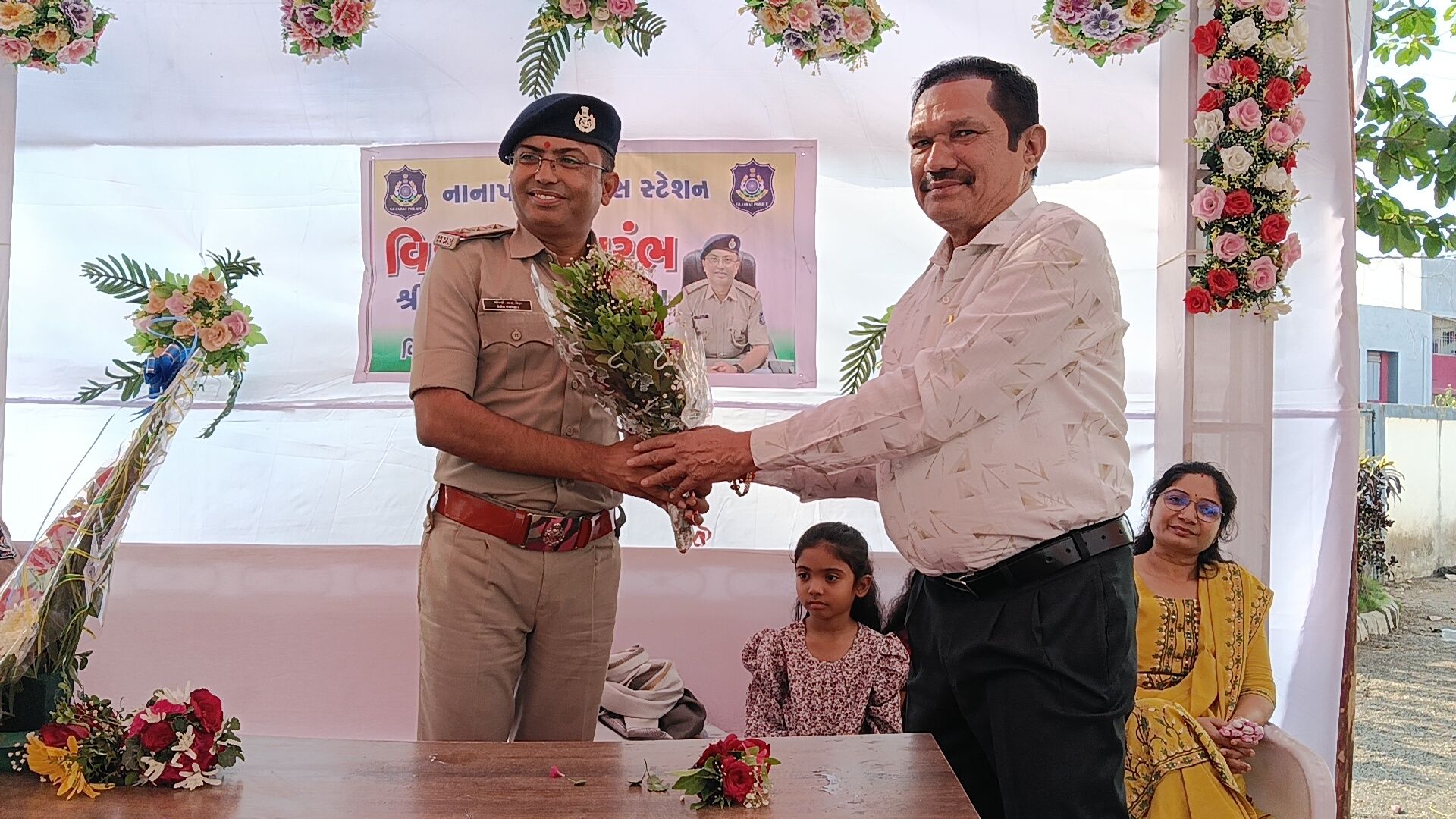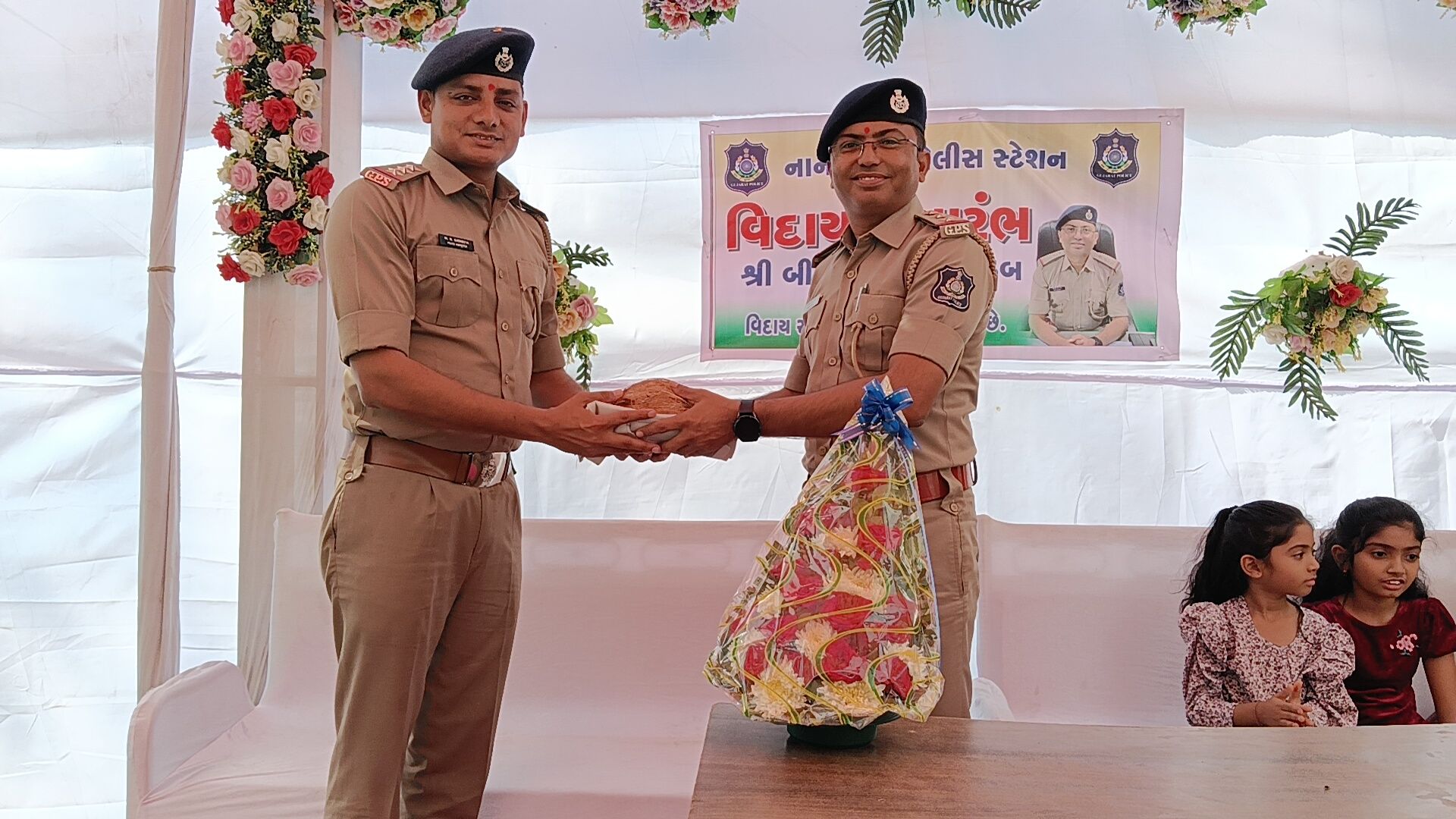 વલસાડ જિલ્લાના નાનાપોઢા પોલીસ મથકે સેવા બજાવનાર પોલીસ ઇન્સ્પેક્ટર ભીમસિંહ બેરાની બદલી થતાં તેમની માનમાં ભવ્ય અને ભાવભરી વિદાય સમારંભનું આયોજન કરવામાં આવ્યું હતું. સાથે જ નવ નિયુક્ત પોલીસ ઇન્સ્પેક્ટરનું ઉષ્માભર્યું આવકાર સમારંભ પણ યોજાયો હતો, જેમાં તાલુકાના અગ્રણીઓ, પોલીસ અધિકારીઓ, કર્મચારીઓ તથા સરપંચો મોટી સંખ્યામાં ઉપસ્થિત રહ્યા હતા.