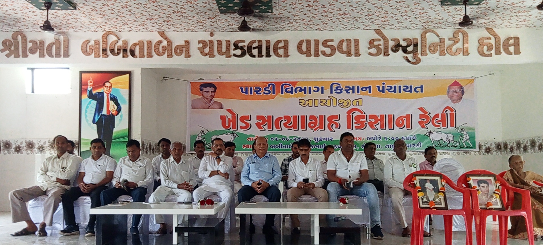 પારડી વિભાગ કિસાન પંચાયત પારડી આયોજીત ઐતિહાસિક પારડી ખેડ સત્યાગ્રહ 1લી સપ્ટેમ્બર 70 માં “કિસાન મુક્તિ દિન” ઉજવણી ચંપકભાઈ પટેલના અધ્યક્ષ સ્થાને શ્રી બબલીબેન ચંપકભાઈ વાડવા હોલ રોહિણા ખાતે યોજવામાં આવી હતી.