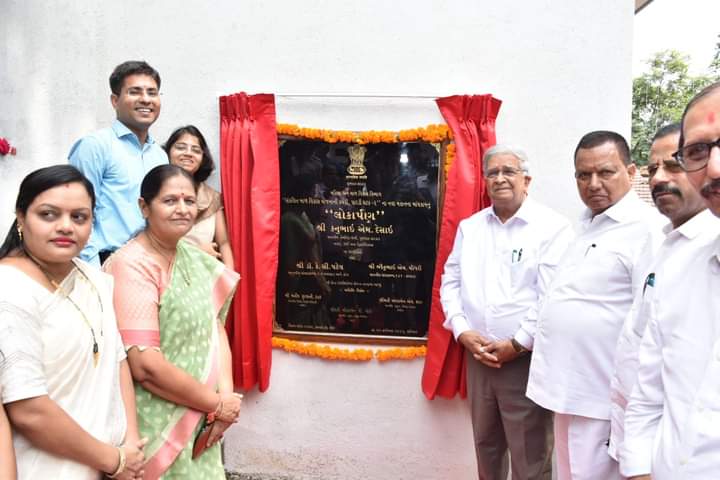 રૂા. ૨.૪૦ કરોડના ખર્ચે તાલુકા પંચાયત ભવન અને રૂા. ૩૨.૯૪ લાખના ખર્ચે તૈયાર થયેલા સી. ડી. પી. ઓ. મકાનનું લોકાર્પણ કરતાં રાજયના નાણાંમંત્રીશ્રી કનુભાઇ દેસાઇ